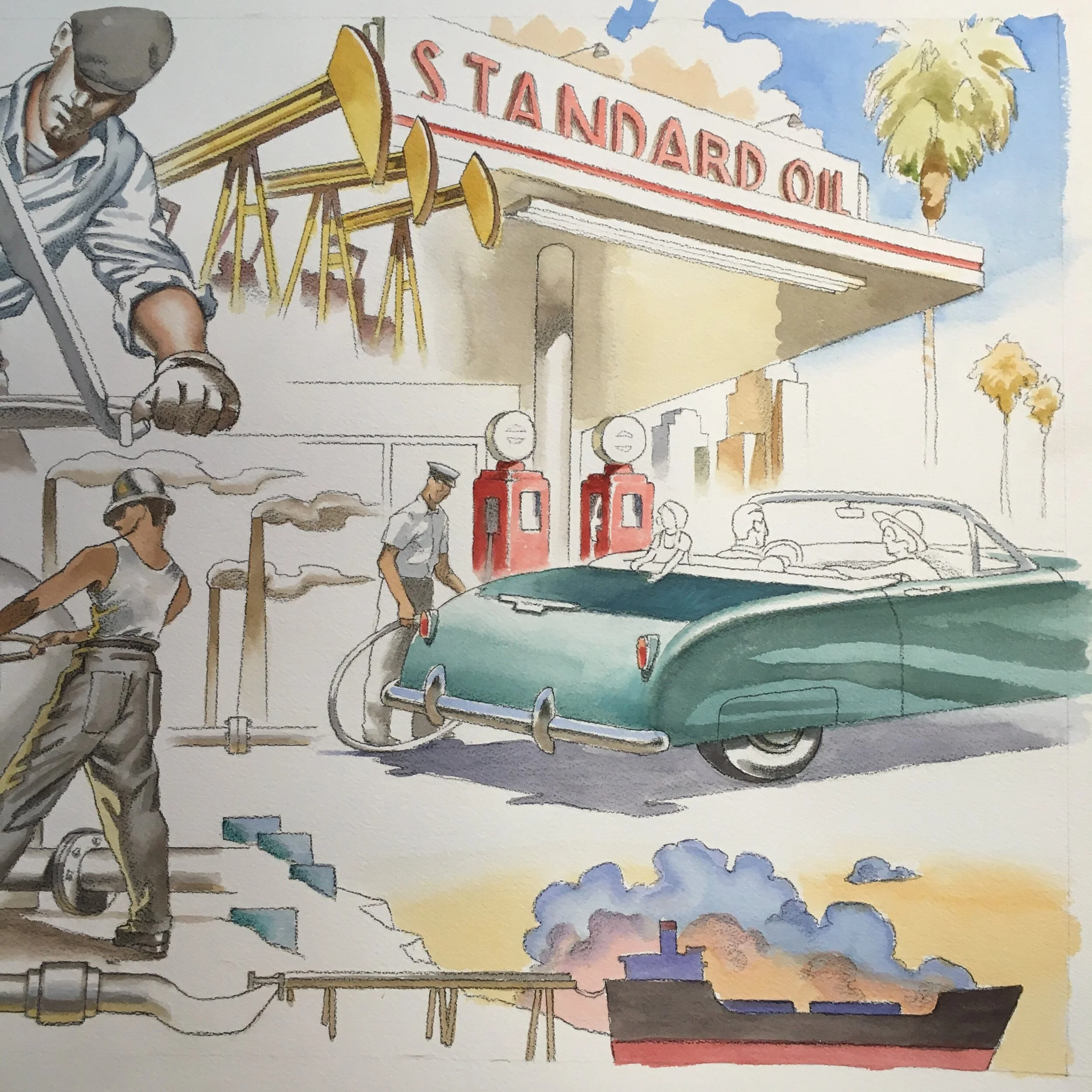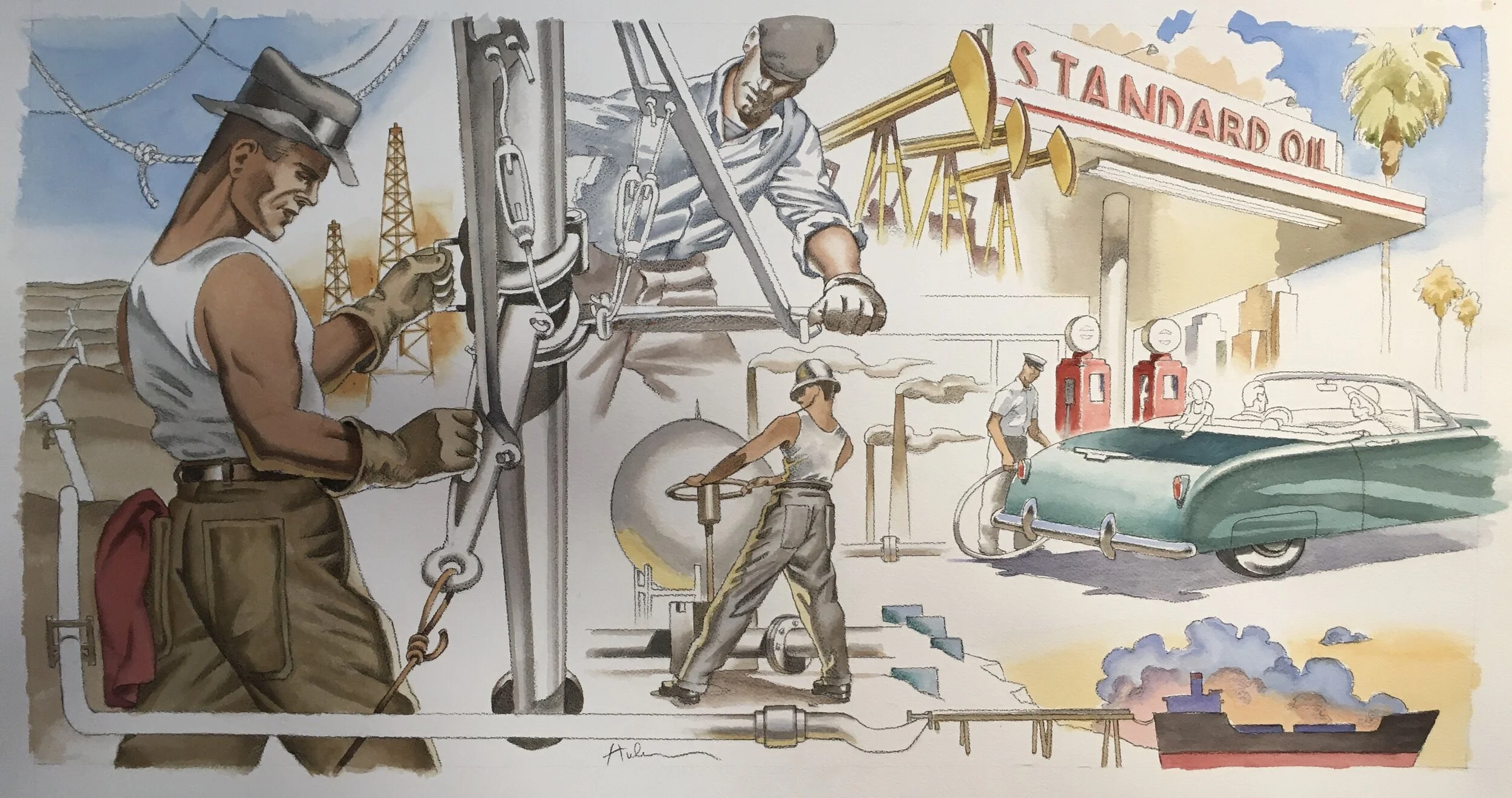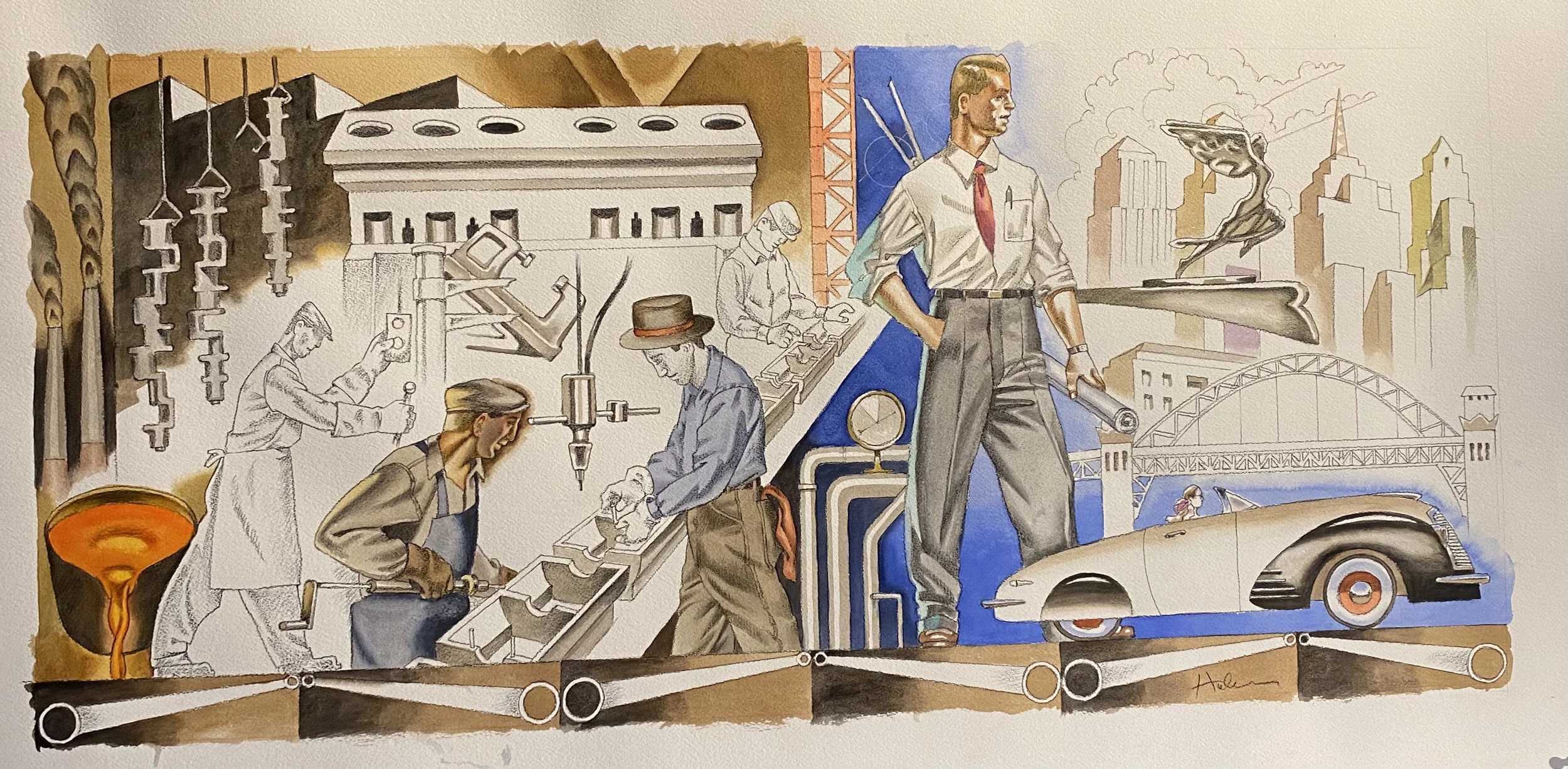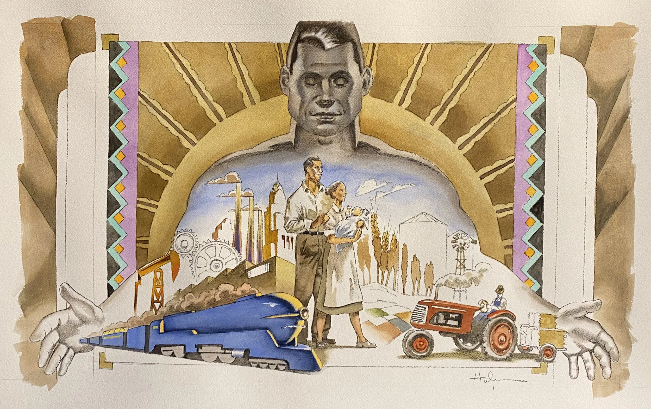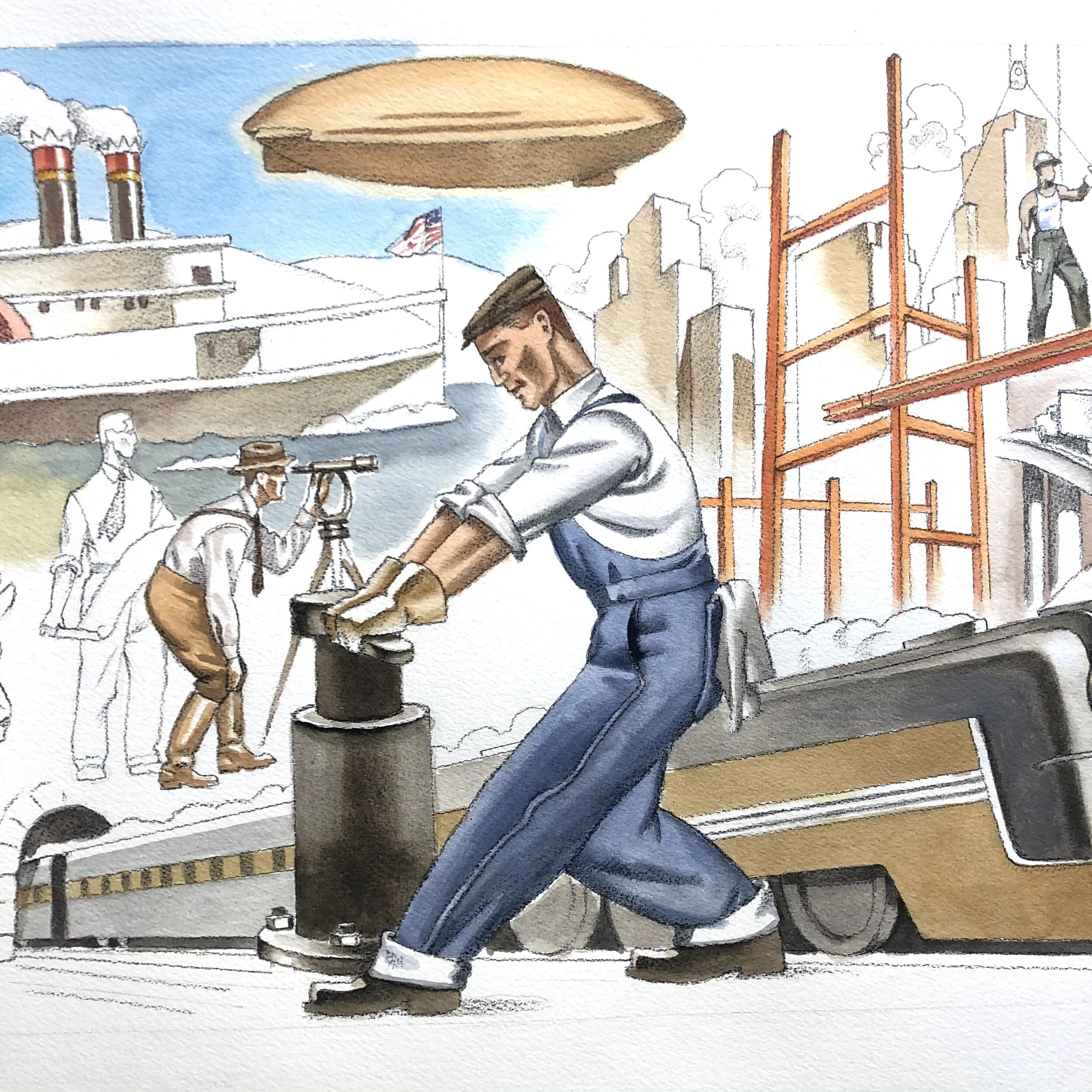 After retiring to the Central Coast, he began to develop a body of fine art depicting the golden age of Art Deco as his paintings embody the strength and achievements of the 1930s Era.